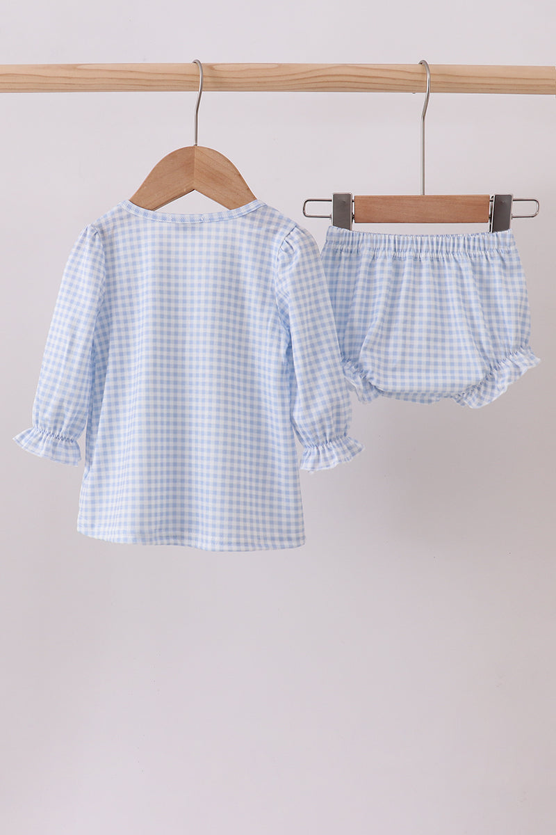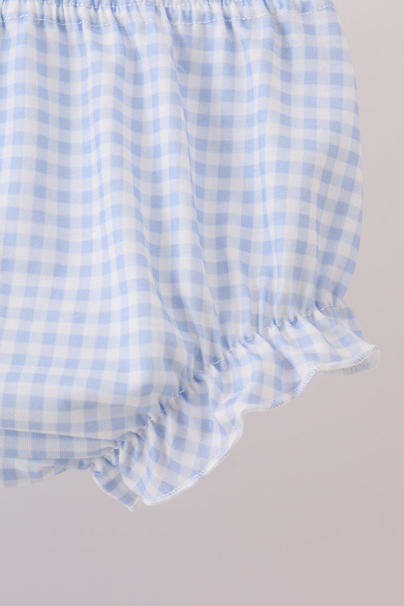 Celebrate the holidays with a twist of whimsy in this Blue Santa Claus Embroidery Bloomer Set. Featuring charming embroidered Santa motifs on a vibrant blue fabric, this playful outfit brings festive cheer and comfort. Perfect for little ones to jingle all the way in style and softness.