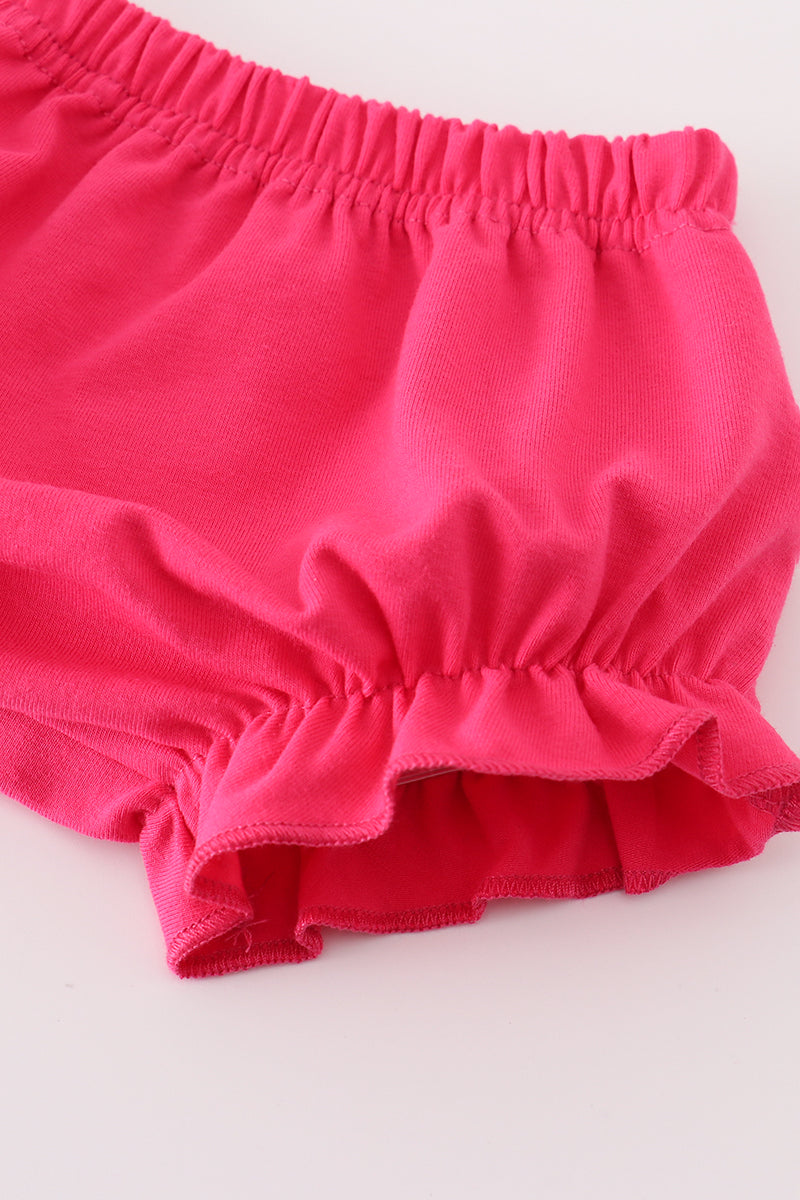Dress your little one in charm with this green floral character applique bloomer set. Featuring playful floral designs and a cute character applique, it adds a fun touch to any outfit. Soft and comfortable, it’s perfect for active days filled with adventure and smiles.