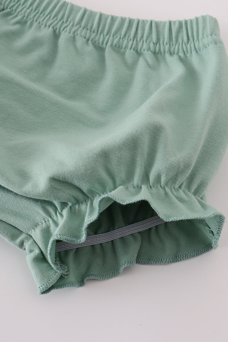 Green floral pumpkin embroidery smocked bloomer set